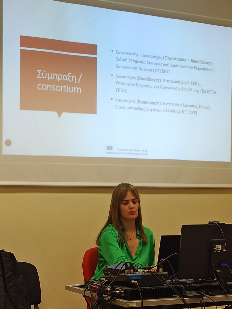 Το σεμινάριο διοργανώθηκε στο πλαίσιο υλοποίησης του έργου: «Εθνικό Σημείο Επαφής για το Πρόγραμμα EaSI (Employment and Social Innovation) – NCP EaSI» το οποίο υλοποιείται από τη σύμπραξη των: